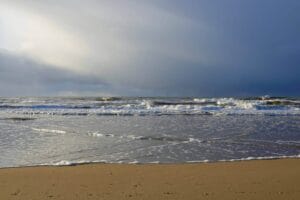Valt diep over het strand.